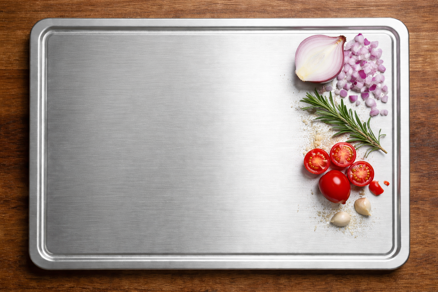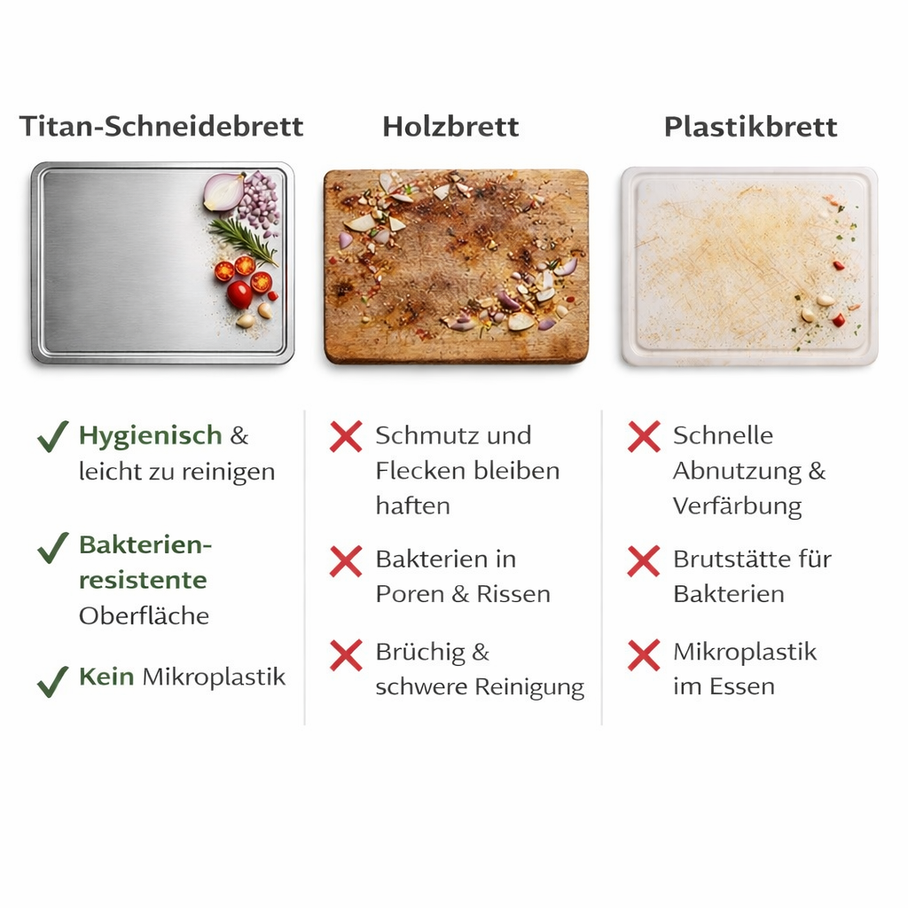 Unser Titanium Stainless Steel Schneidebrett bleibt glatt, stabil und hygienisch –